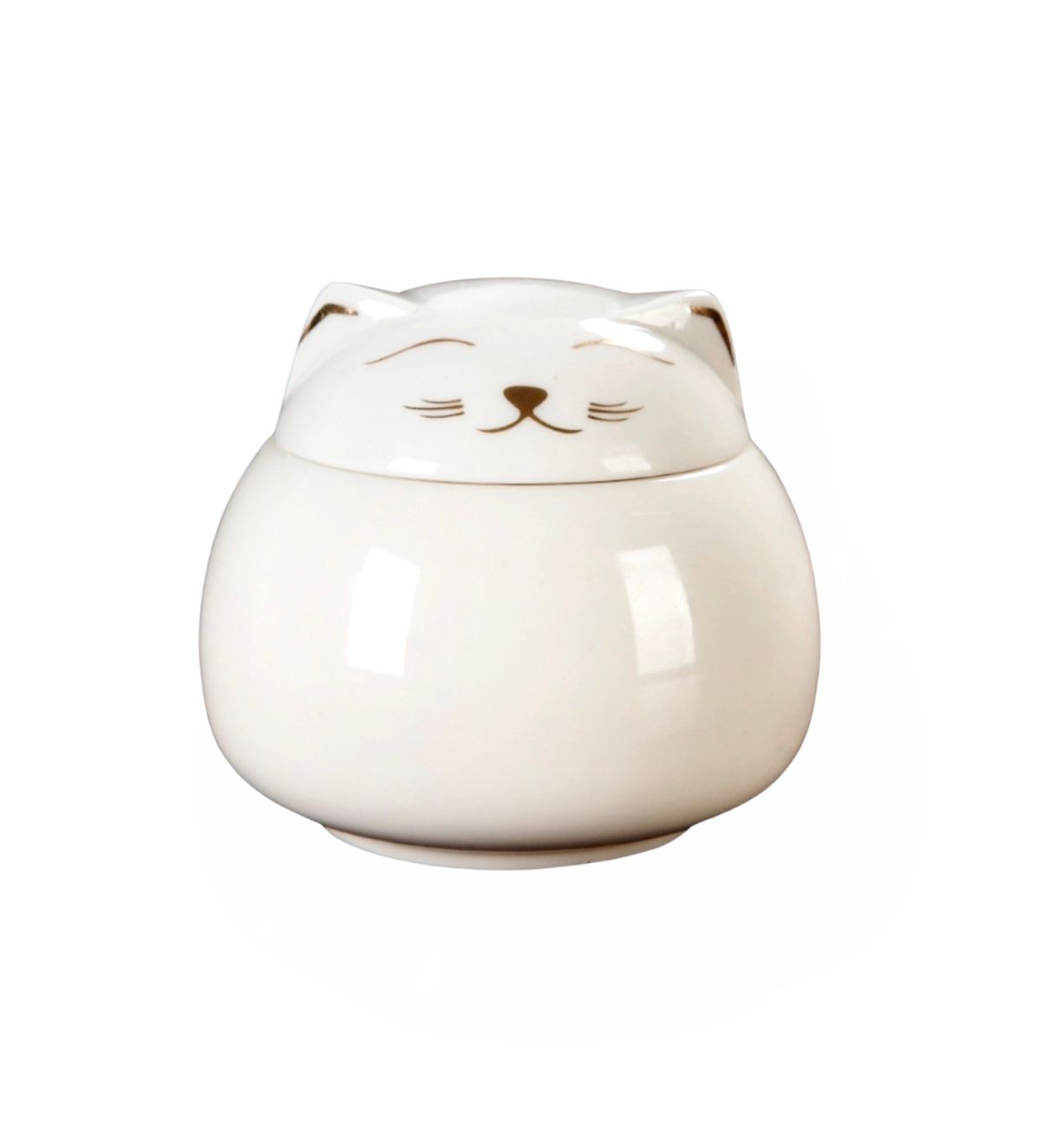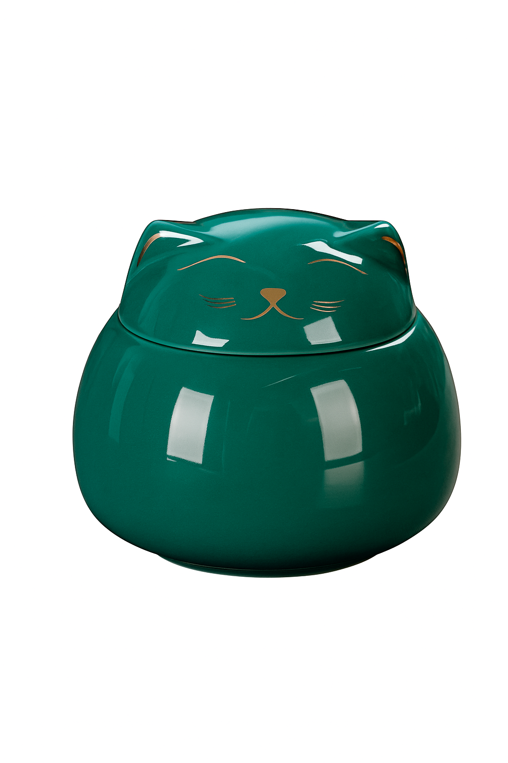 Fabricada en cerámica esmaltada brillante, con detalles dorados y tapa ajustada, ofrece una capacidad de 220 ml, 7,8 cm de alto y 9 cm de ancho, ideal para mascotas pequeñas.